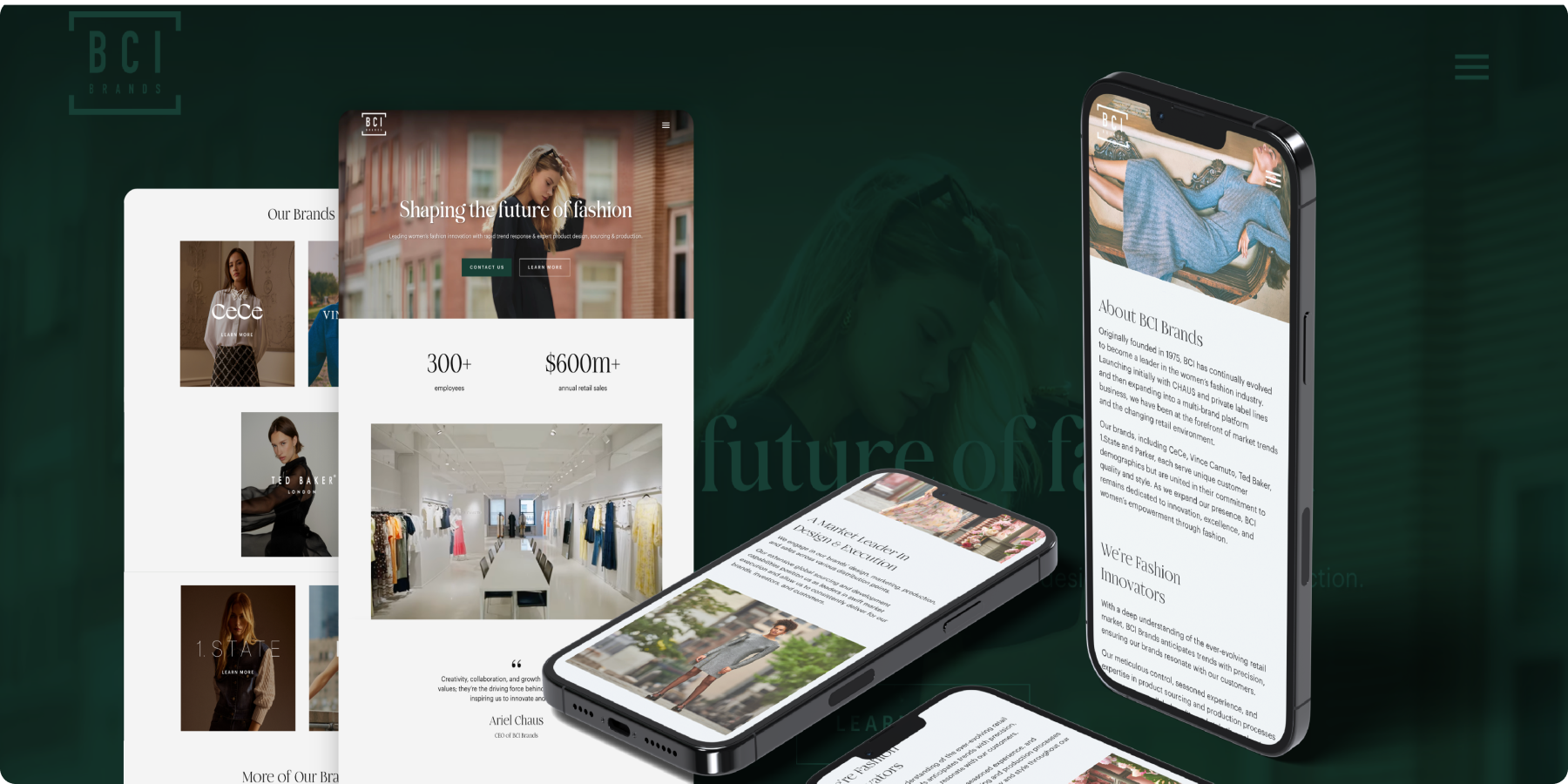 BCI Brands approached us to revamp their website and redefine their online identity. With them being a multi-billion business stocking the racks at Nordstrom & Dillards, part of this challenge included crafting compelling copy to position them as leaders in the women’s fashion industry. We needed to create a modern, minimalistic website that radiates luxury and cements BCI Brands’ status as a beacon of style and sophistication.