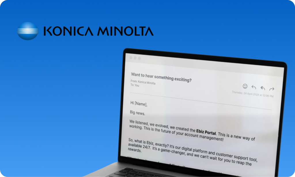 Konica Minolta Konica Minolta is a leading services provider specializing in imaging, printing, healthcare, and digital transformation using AI, IoT, and optical technologies to enhance business efficiency.WHAT WE SOLVED Konica Minolta needed to move customers from manual account management to a new self-serve portal – without losing engagement or adoption. We built a targeted email […]
